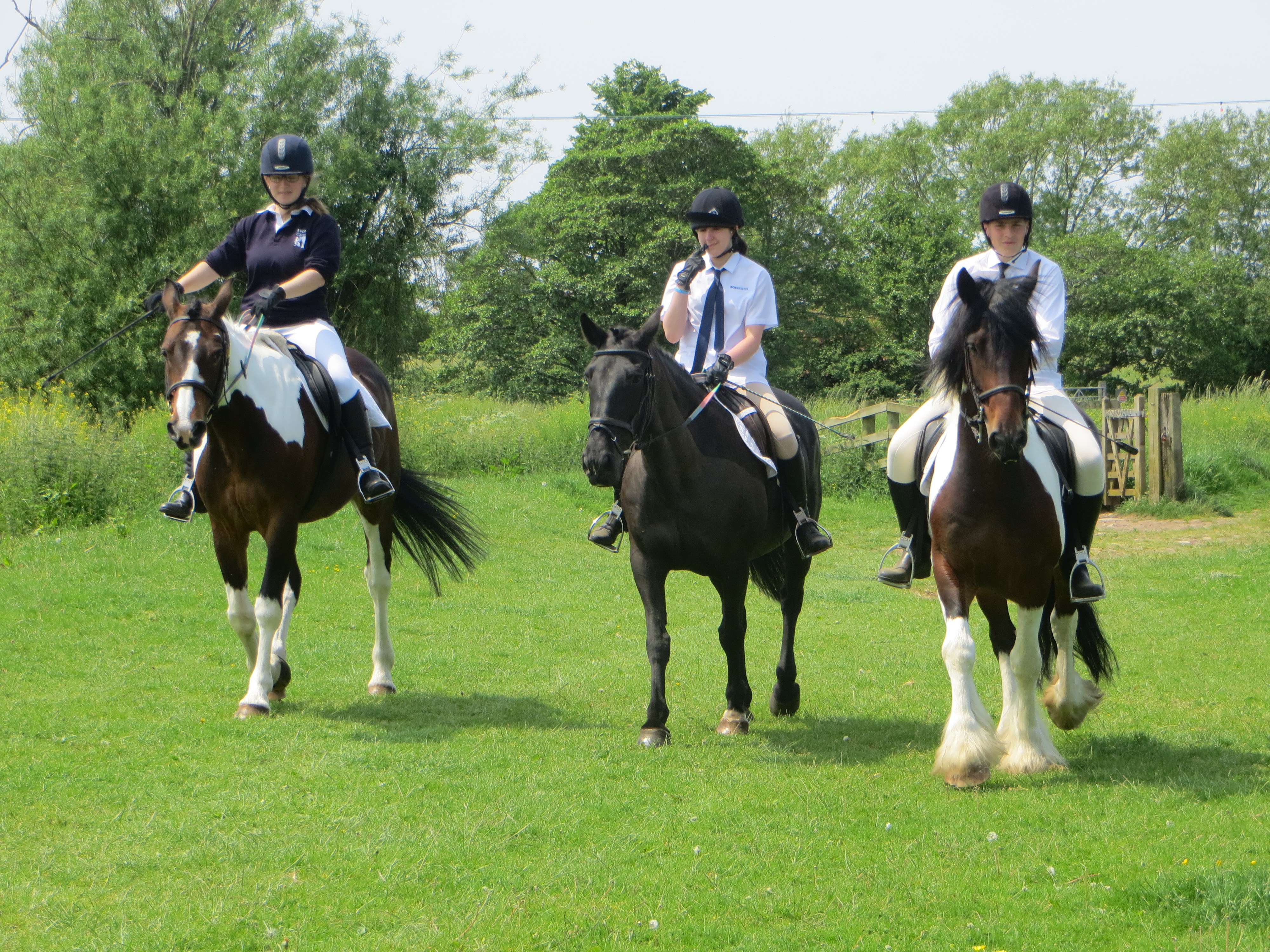 - Our wonderful trio of riders and horses: Geroge on Robbie, Stella on Hope and Milie on Bella
