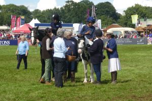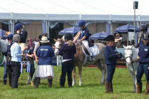 However, just before we were due to go to the arena, the sun came out and everyone enjoyed the whole experience. I must congratulate the Kaya, our groom, on preparing the ponies so beautifully beforehand and coping with tacking up all six of them in record time once the rain had finally stopped.